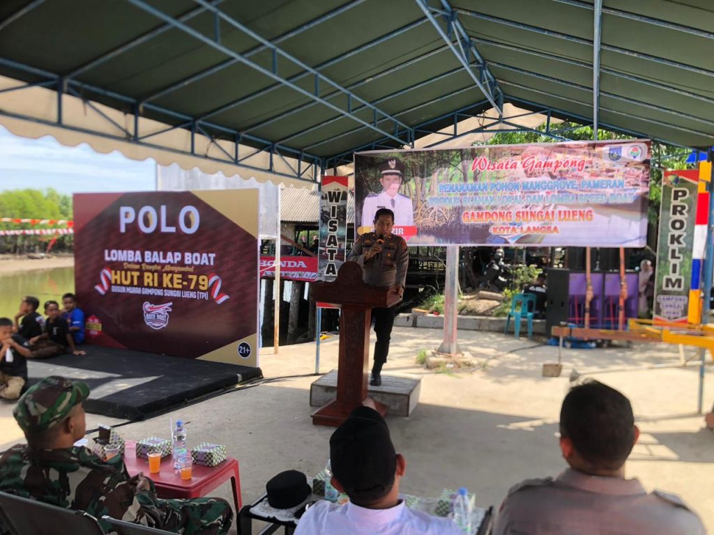 Langsa – Suasana alur sungai Gampong Sungai Lueng, Kecamatan Langsa Timur, Kota Langsa, dipenuhi sorak sorai warga yang antusias menyaksikan pembukaan perlombaan speed boat race dalam rangka peringatan HUT ke-79 Republik Indonesia. Acara yang berlangsung meriah ini dihadiri oleh Kapolsek Langsa Timur IPTU Marias, S.H., yang tidak hanya hadir sebagai tamu kehormatan, tetapi juga memberikan himbauan penting kepada seluruh peserta dan penonton.