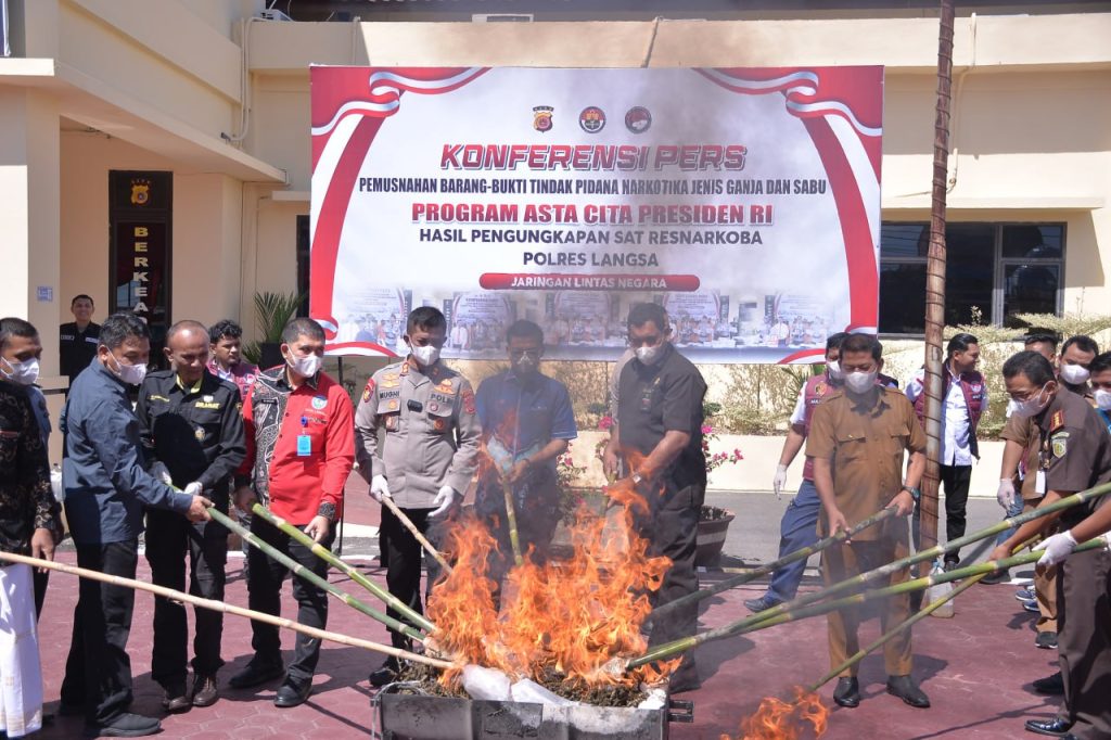Langsa – Polres Langsa, Satresnarkoba Polres Langsa bersama Polda Aceh melakukan pemusnahan barang bukti narkotika jenis ganja dan sabu hasil pengungkapan kasus periode Januari hingga Februari 2025. Kegiatan ini merupakan bagian dari dukungan Polri terhadap program Asta Cita Presiden dalam memberantas peredaran narkoba di Indonesia.