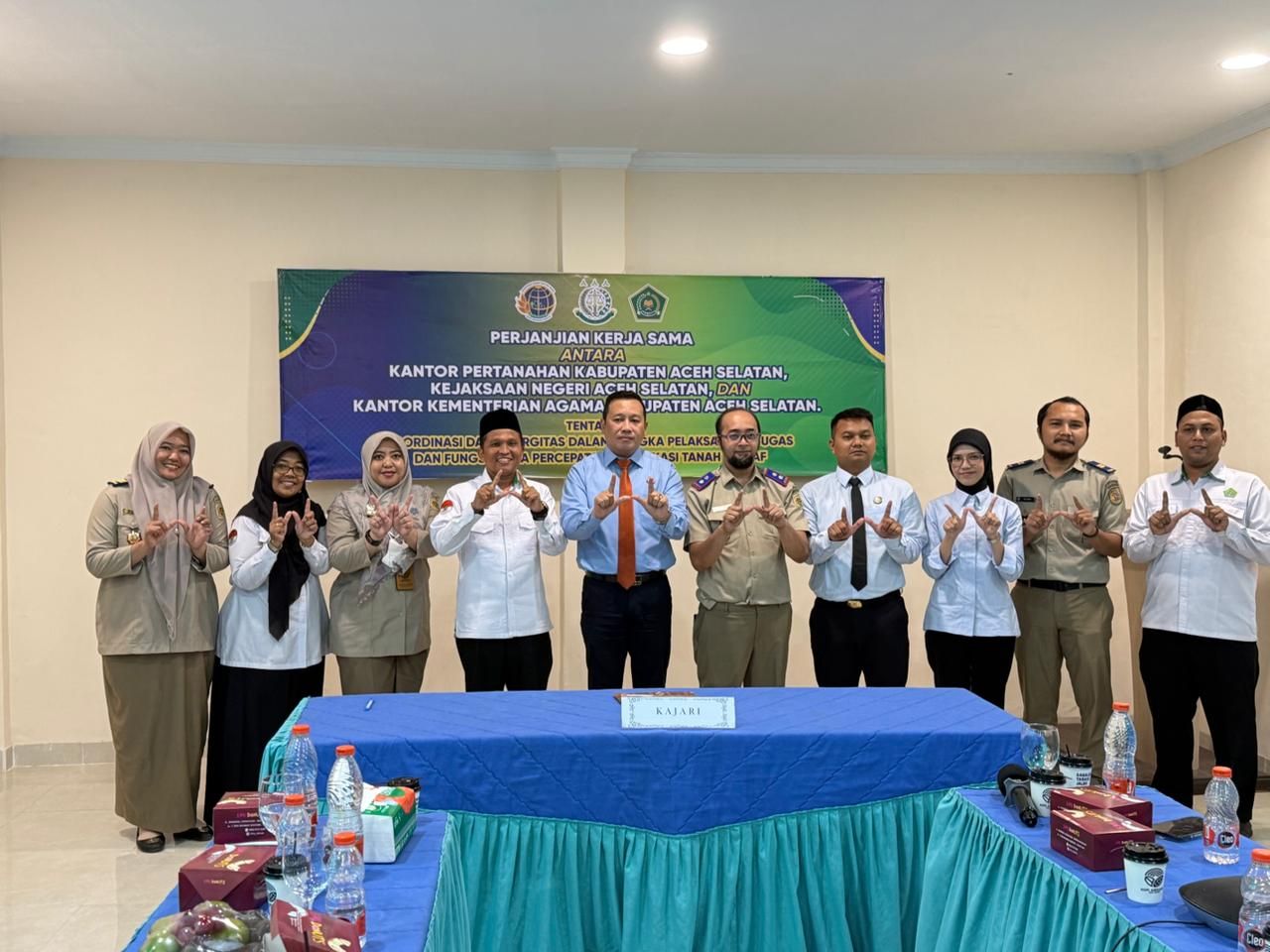 Tapaktuan — Pemerintah terus mendorong tertib administrasi pertanahan, khususnya terkait aset wakaf. Hal ini ditandai dengan penandatanganan Perjanjian Kerja Sama antara Kantor Pertanahan Kabupaten Aceh Selatan, Kejaksaan Negeri Aceh Selatan, dan Kantor Kementerian Agama Kabupaten Aceh Selatan, Selasa (14/4/2026)