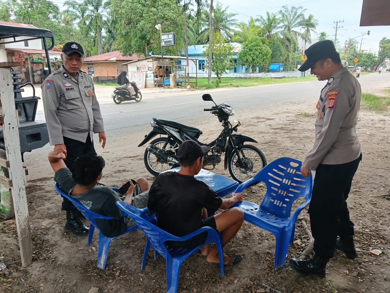 Dalam pelaksanaannya, personel kepolisian tidak hanya melakukan pemantauan situasi, tetapi juga aktif berinteraksi langsung dengan warga. Seperti yang terlihat, Aiptu Benny bersama Brigadir Roy Tarigan menyambangi beberapa lokasi dan berdialog dengan masyarakat setempat. Dengan pendekatan yang santun, humanis, dan penuh keakraban, keduanya menyampaikan pesan-pesan kamtibmas sekaligus mengajak warga untuk terus meningkatkan kewaspadaan terhadap potensi tindak kejahatan.