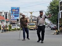Personel Satlantas Polres Langsa Bantu Penyandang Disabilitas Menyebrang Jalan